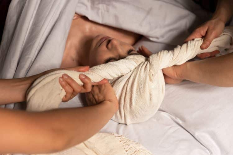 En post-partum, le Rebozo permet de resserrer et soutenir le bassin, favorisant une récupération progressive et confortable.