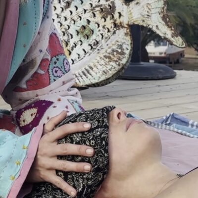 Certaines sessions peuvent intégrer un travail en suspension avec le tissu Rebozo, offrant une sensation d’apesanteur et une détente profonde.
